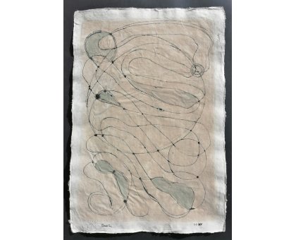 Tecnica mista: china, ocra gialla e verde da bollitura di carciofo su carta di riso thailandese.