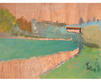ACRILICO SU TAVOLA TONINO GOTTARELLI ' IL SEGNALE VISTO DI SPALLE ' dimensioni L 63 x H 87 cm.