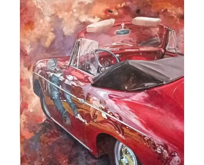 MIXED MEDIA SU TELA MARA ISOLANI ' RIFLESSI SU UNA PORSCHE ROSSA # 2 ' dimensioni L 80 x H 80 cm.