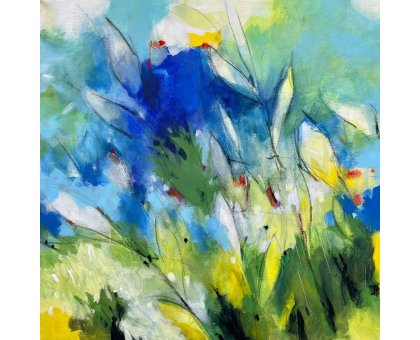 ACRILICO SU TELA ALESSANDRO ANDREUCCETTI ' FIORI SOTTO IL CIELO DI PRIMAVERA ' dimensioni L 60 x H 60 cm.