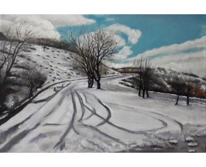 Tempera su tela - Titolo " Strada alberata " by Antonio Presutti . Anno 2019 - Dimensioni L 50 x H 35 cm. Opera Unica - Certificato di autenticità.