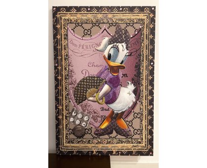MIXED MEDIA SU TELA BEPPE RANICA ' DAISY DUCK DOM PERIGNON ' dimensioni L 70 x H 105 cm.
