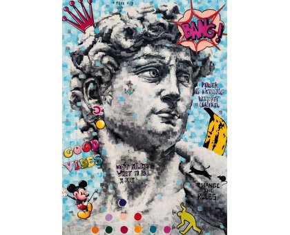 Nelle opere con  elementi di pop culture, l’artista cerca di unire alla bellezza universale, una parte di ironia sconosciuta alla bellezza classica umanizzando la figura del mito, scandagliando varie tipologie dell’intimo umano.