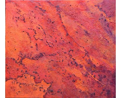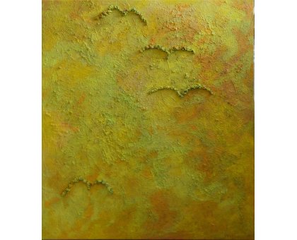 Tecnica mista: con fondo in gesso, acrilico, canapa, sabbia e rete metallica, colori ad olio. Opera con passepartout.