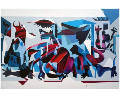 ACRILICO SU TELA PIERNICOLA MUSOLINO ' LA GUERNICA DEL GIORNO DOPO ' dimensioni L 100 x H 70 cm.