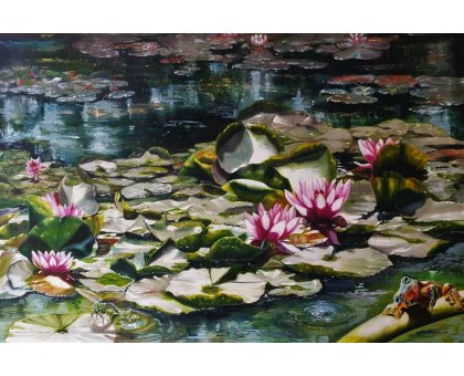 OLIO SU TELA IRMA SERVODIO ' ...E AVEVA IMPARATO CHE MOLTI PRINCIPI SONO RANOCCHI! ' dimensioni L 120 x H 80 cm.