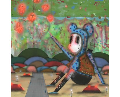 ACRILICO SU LEGNO RAMIRO DAVARO COMAS " THE GREEN LEOPARD QUEEN " dimensioni L 77,4 x H 103 cm.